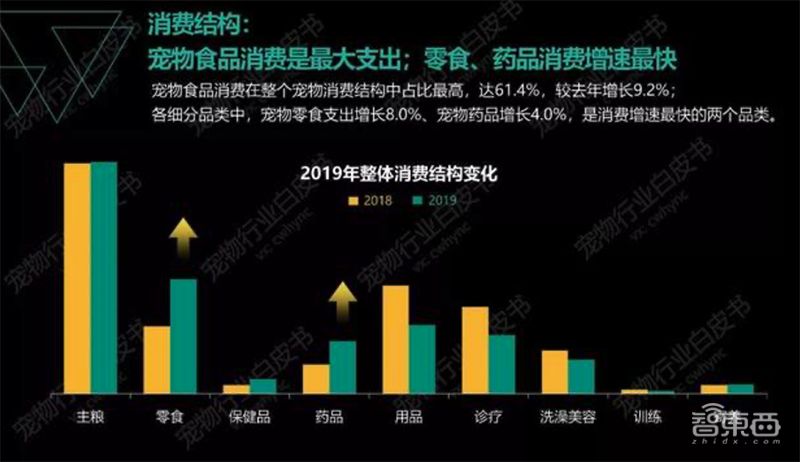 ▲2019年全国宠物整体消费结构变化情况(来源:《2019年中国宠物行业白皮书》)
