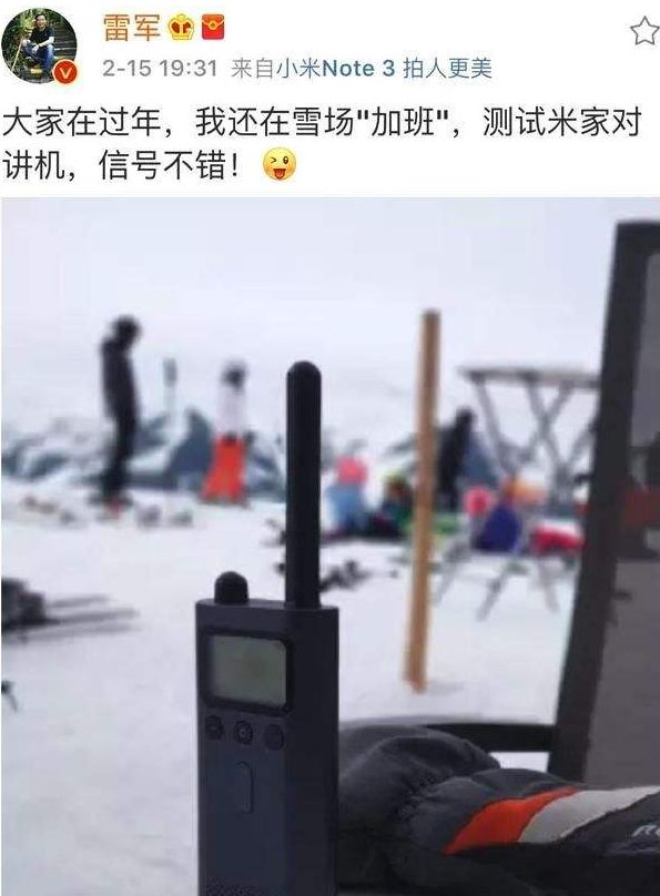 2018年的除夕夜,雷军的微博说的是:“大家在过年,我还在雪场‘加班’,测试米家对讲机,信号不错!”定位显示他在奥地利。