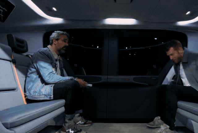 Kyle Vogt说:“这款车的设计很舒服,乘客在乘坐的时候可以完全放松,车辆的内部空间比较大,乘客可以将腿完全伸展开。”说完他就把自己的腿伸展开了。