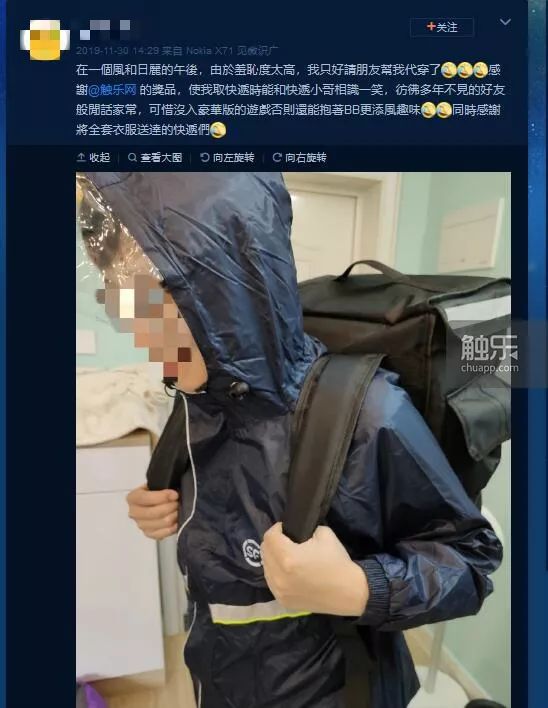 在发布《死亡搁浅》的评测后,触乐在微博抽奖赠送了两套快递员服装,感谢给我们返图的朋友!