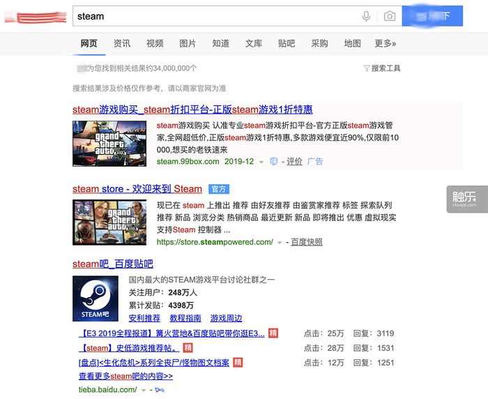如果你在12月的某一天用百度搜索“Steam”,排名首位的可能是一个盗版游戏平台。它宣称“更适合中国游戏玩家”,提供的是游戏的售卖。在这里,你可以花70元买到“单机版”的《荒野大镖客:救赎2》。