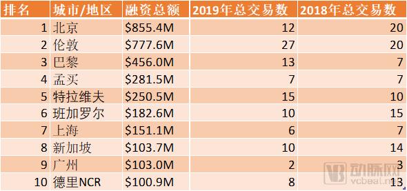 中国作为健康创新中心的领头羊,占据了2019十大最具投资价值的城市中的三个。在总交易量方面,伦敦位居榜首,而巴黎和特拉维夫则在2018年取得了显着增长。