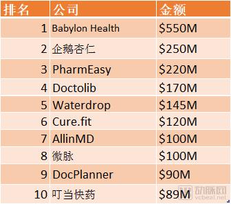 例如,“登月计划”中,资金一般都是护理服务占主导地位的,特别是在美国以外的地区,包括针对以消费者为中心的医疗服务提供商巴比伦医疗(Babylon Health)的大宗交易,还包括中国的企鹅杏仁。仅这两笔交易金额就达到了8亿美元(在StartUp Health的统计中,没有包含京东健康的10亿美元A轮融资)。