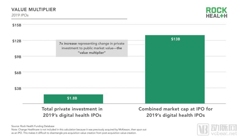 截至2020年1月1日,六笔IPO的总市值为170亿美元。2019年的首次公开募股浪潮正在验证数字健康领域的长尾投资(投资数量少能产生大量回报的公司)的风险模型。