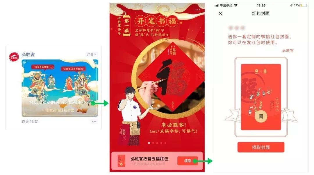 微信定制红包则延续社交特性,快速成为一个新的社交现象。一时间,求封面、晒封面都成为社交媒体的新话题,不仅在微信发酵,甚至在微博、豆瓣、小红书上都有网友晒出了自己领到的红包封面。