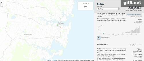 悉尼第一个 Airbnb 房东在2010年入驻,到了2015年,房源数量开始高速增长。到2019年,Airbnb上最新的房源数据是36662家,其中,22918套房为整房或公寓,这个比例占所有房源的62.5%;私人房间房源数量为22918,占35.8%;共用房间房源数量为629,占1.7%。
