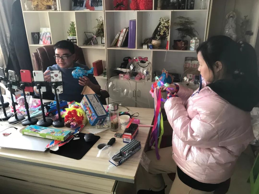 距离义乌国际商贸城5公里远的北下朱村,一对卖玩具的小生意人临时决定不回家过年。郑留平和沈燕子夫妻俩这几天每天在手机前直播8个小时,趁着留守义乌的档期,把玩具都销出去。