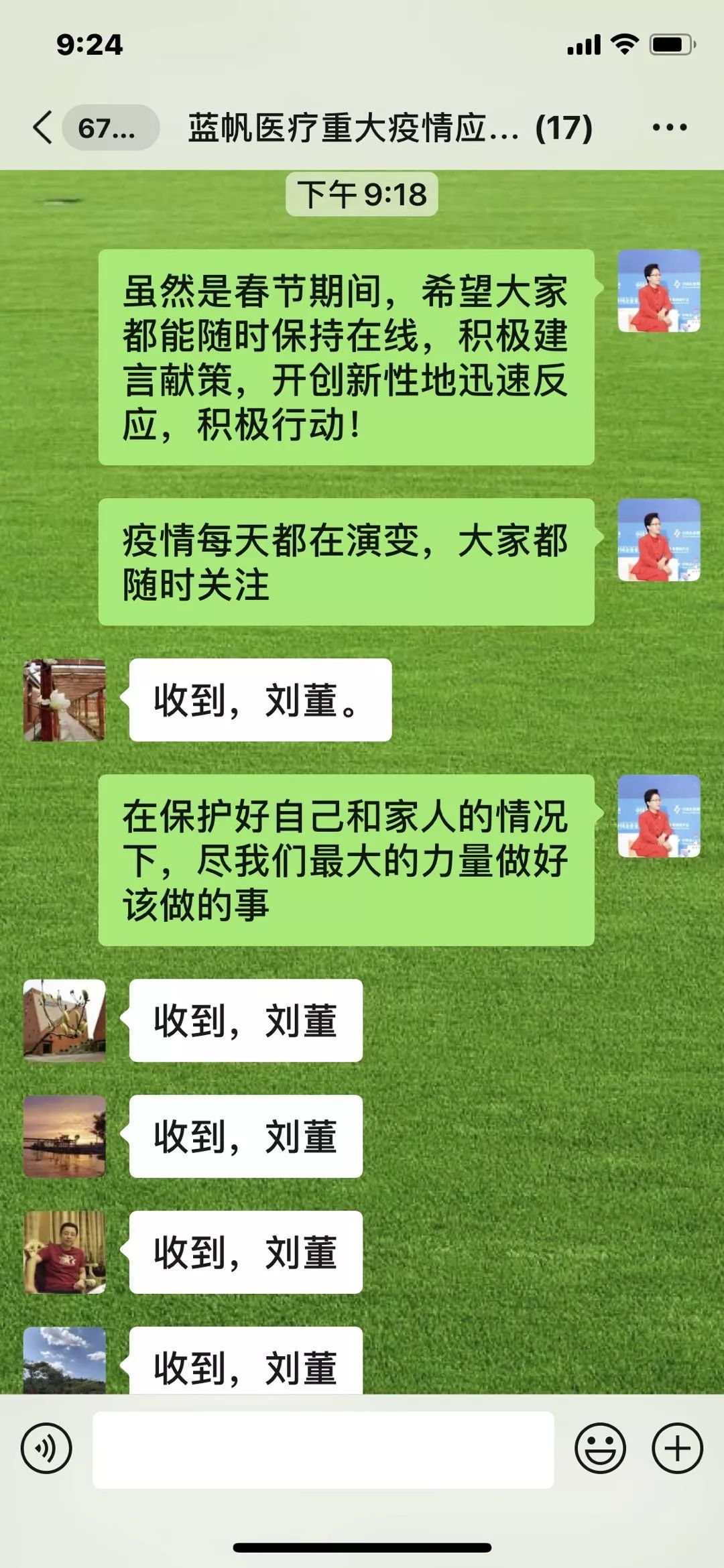 蓝帆医疗重大疫情应急响应指挥工作小组微信截图