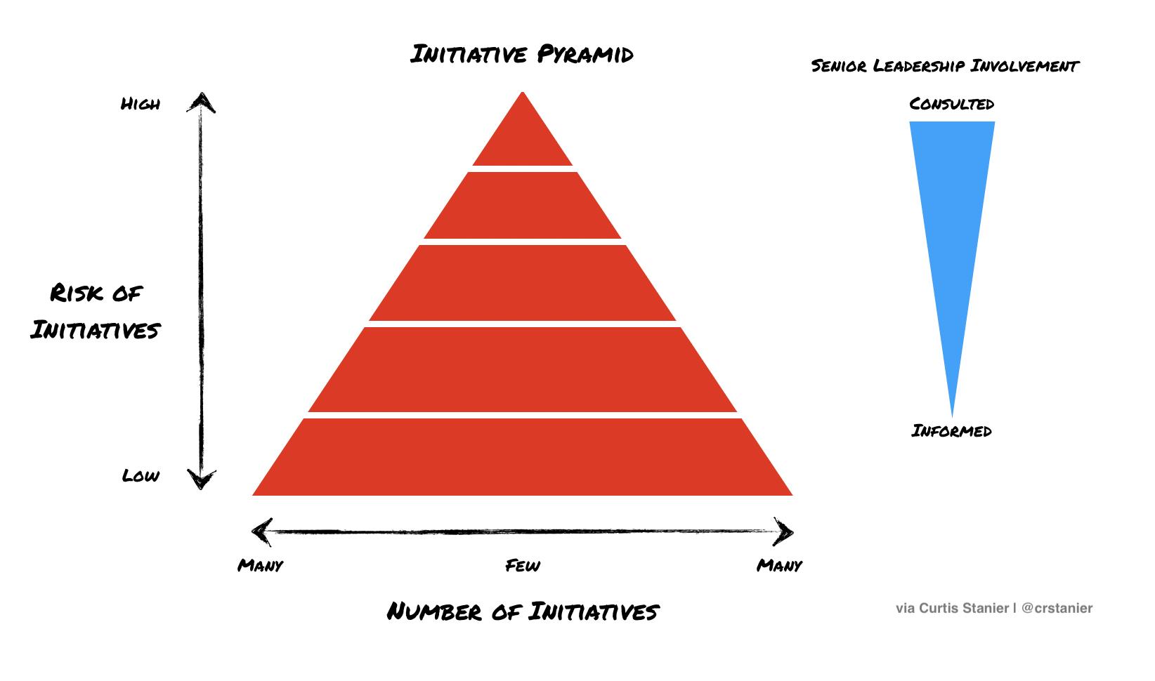 然而,如果涉及到金字塔顶端的方案,通常就代表更高的风险。比如,考虑推出全新的产品。这个时候,你就需要领导的介入和支持。