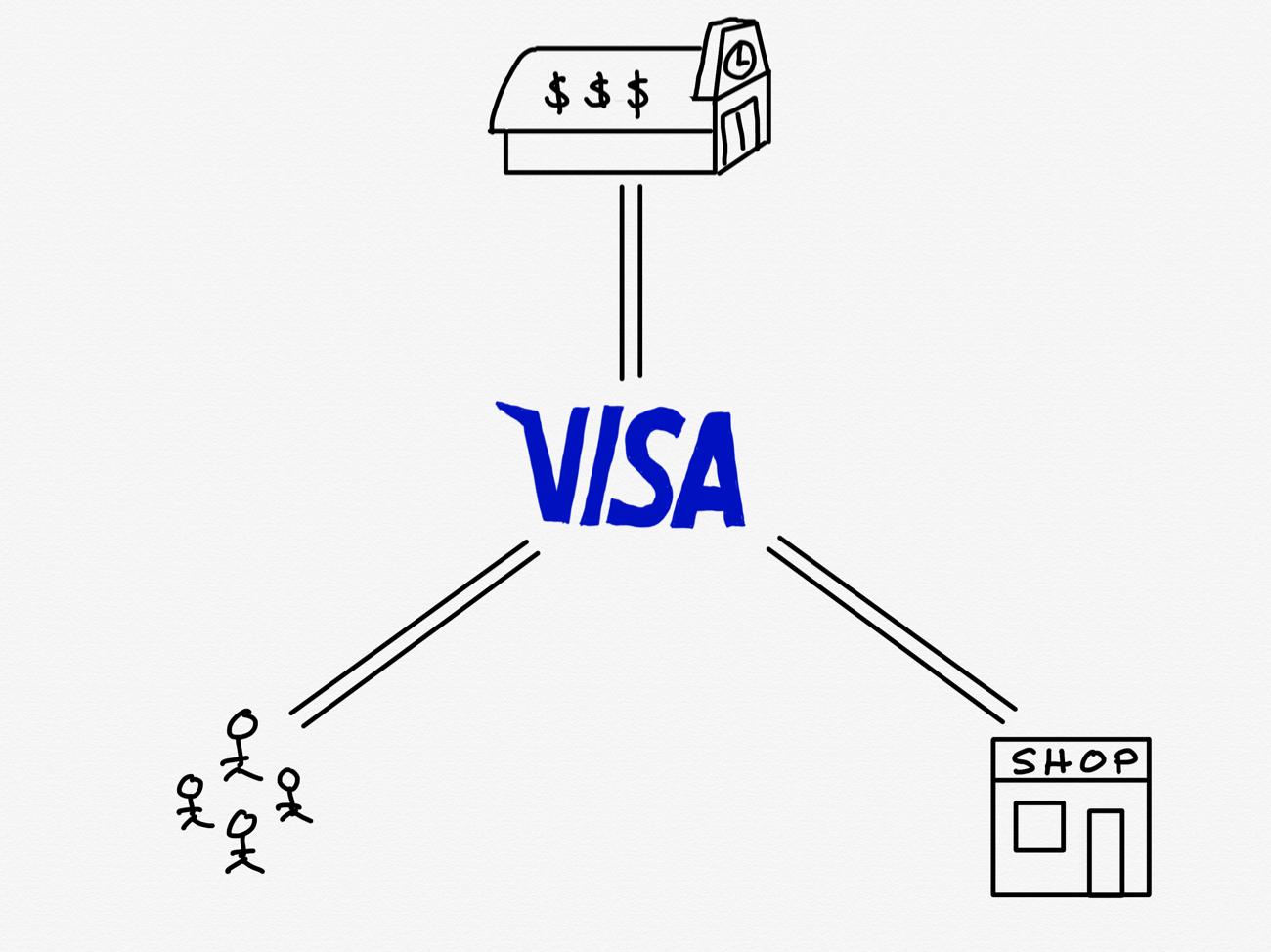 如今,商家在这方面并没有太多选择。信用卡是展现多边网络威力的最佳范例;Visa 链接着银行、消费者和商家: