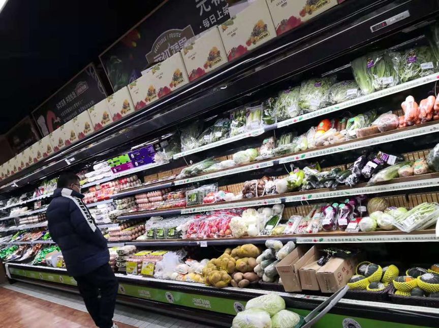 据张平介绍,目前店内的蔬菜种类基本齐全,但每天8点半开市之后,到中午基本就会全部卖光,囤菜现象不明显,但由于居民都宅在家,对蔬菜的需求量会比往日多很多。