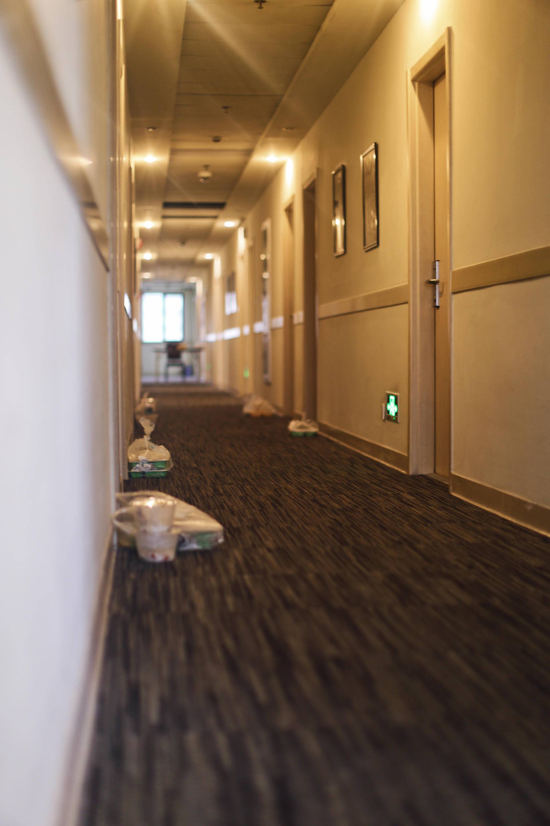 防疫人员告诉我,这家酒店目前已停止对外运营,成为近期抵沪的武汉人的集中隔离点,我们是第一批到达的人。我和车上的另一个男生被安排到8楼的客房。隔离的措施很彻底,防疫人员先护送我上了8楼,然后再由另一拨人将那个男生送到房间里。