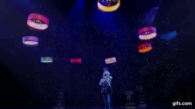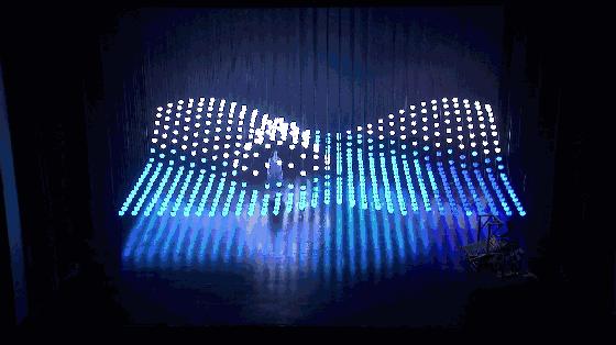 2017年,张艺谋执导的观念舞台剧《对话·寓言2047》,其中有一段表演是由笙乐演奏家和80架无人机同台共演。无人机随着笙乐的旋律节奏变换颜色和阵型。古典悠扬的曲调,配合轻盈起舞的光点,音乐与视觉充满创新的结合在有限的空间里给人无限遐想。