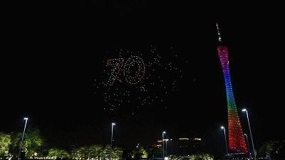 2019年国庆期间,亿航用1000架无人机在夜空中勾勒出新中国成立70年的辉煌成就,比如北京奥运会、 “我爱你中国”、五星红旗等。充满爱国情怀的图案触发观众自行拍摄图片和视频在社交平台进行分享交流,形成8亿浏览量和互动。