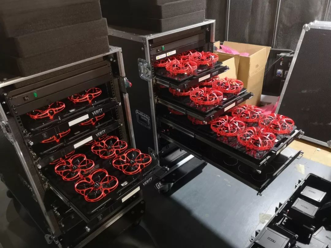 据Verity 工作室官网介绍,工作室的服务完全客制化,为每一个演出合作方定制一套满足其独特需求的无人机表演团队。工作室负责设计、编码和组装所有的表演用无人机,根据舞台效果的需求,提前设计每一架无人机的外观,再用编程制定每一架无人机的位置、动作、灯光效果。演出时使用一个总控制系统定位每一架无人机,发出如何移动的指令。