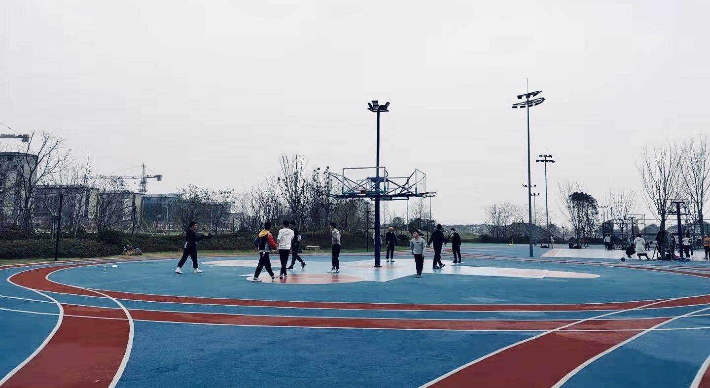 1月27日下午,空旷的社区公共健身中心篮球场地的运动场景