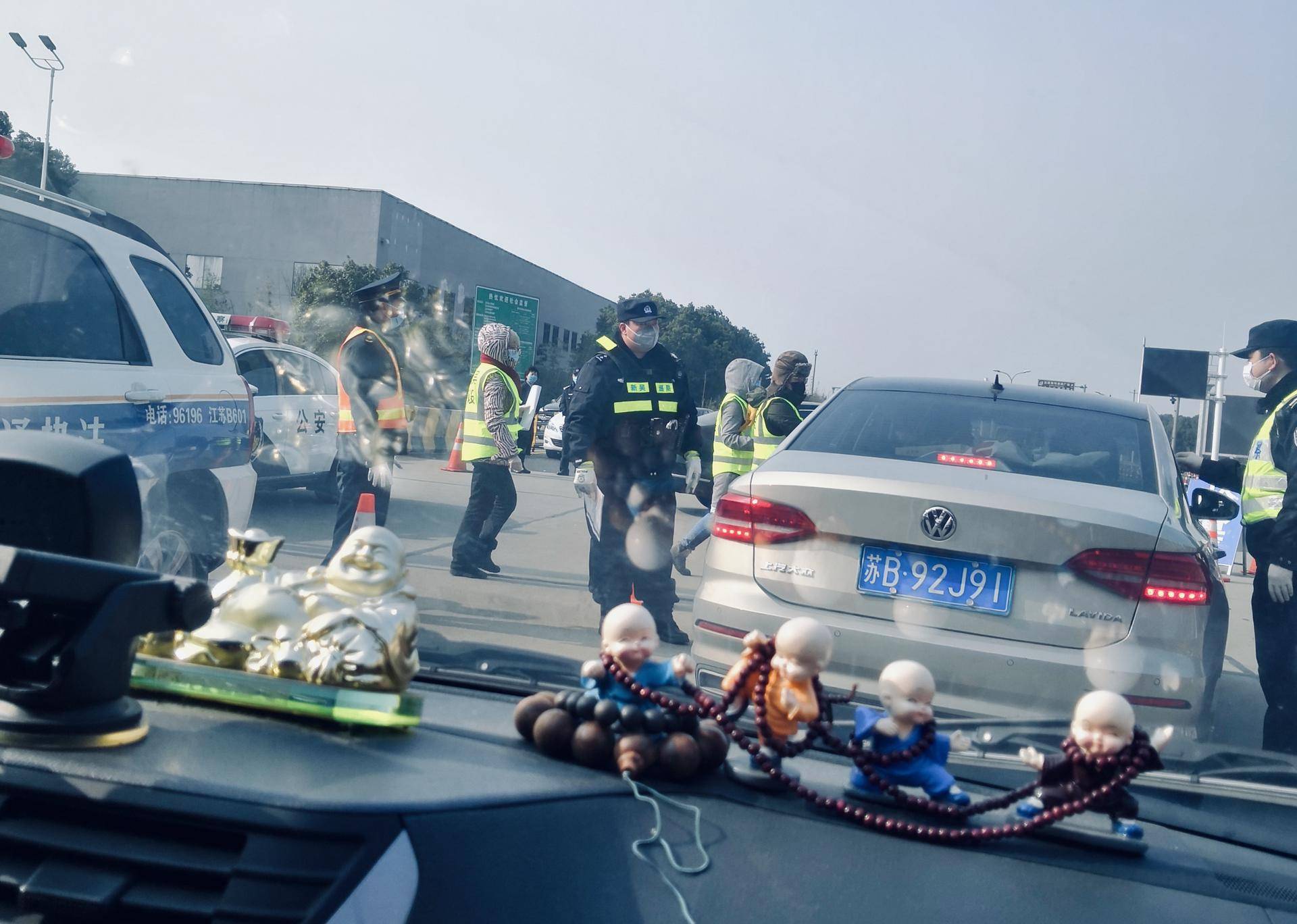 跟我想象中不太一样,一路上没有堵车,高速公路出入口检查也很快。每个出入口都有几十个人在查车,先是医务人员量体温,然后是警务人员登记身份信息,询问最近是否有湖北出入史。没问题的话,一辆车差不多5分钟就结束了,本省的人还会更快一些。