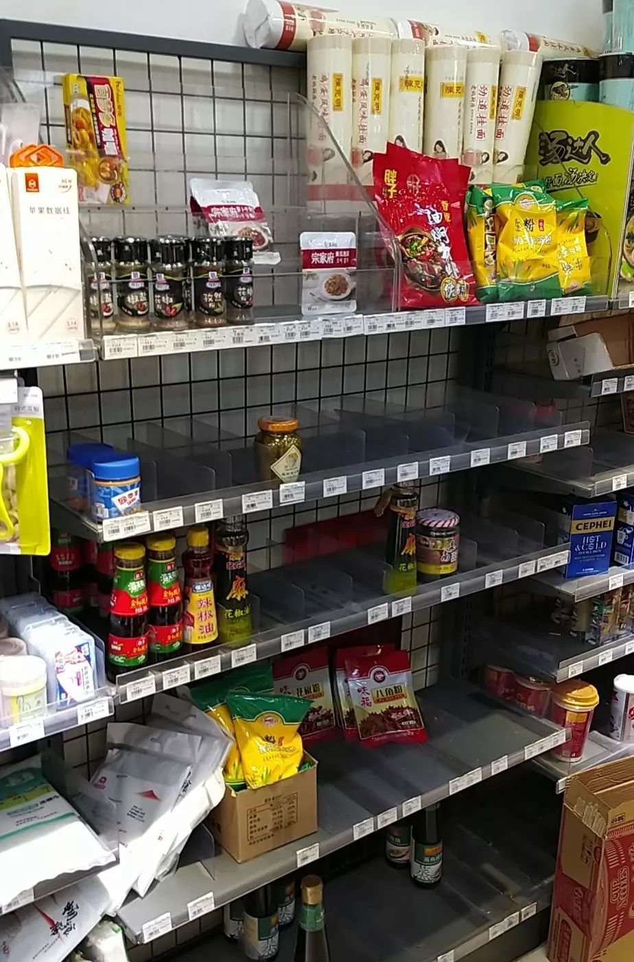 这个数字是很让人吃惊的,要知道,平时这个时间段,我们只会卖五六百块钱,而且主要是卖烟、槟郎和饮料——特别是啤酒。可那天晚上,大家疯狂往家里囤的是大米、挂面、泡面、榨菜和调料,包括酱油啊、醋啊、料酒啊、白糖啊,还买矿泉水。