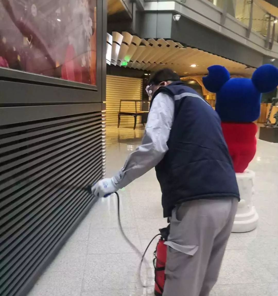 正值全社会共同防御疫情的特殊时期,侨福芳草地特别于出入口、电梯扶手、电梯轿厢、停车场等公共区域实施定时消毒工作,全力营造健康、安全的公共环境。工作人员也均佩戴了口罩,并每日定时测量体温。