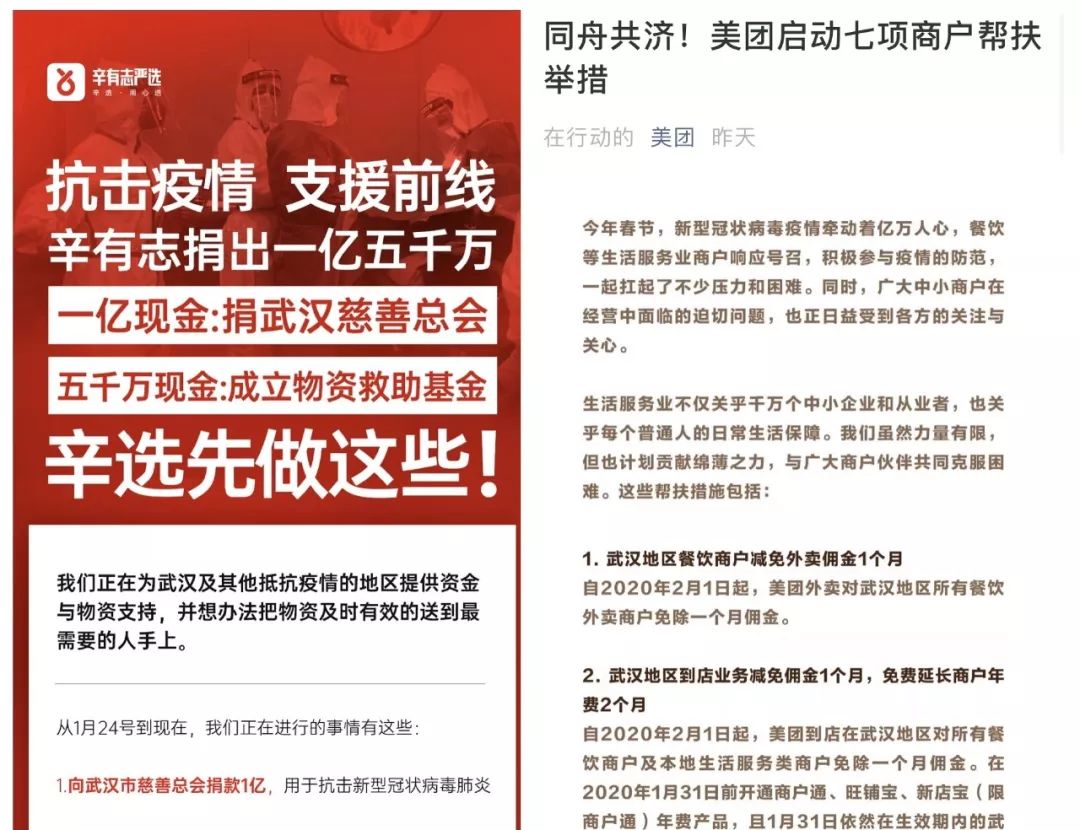 网红辛巴和美团在疫情期间的行动