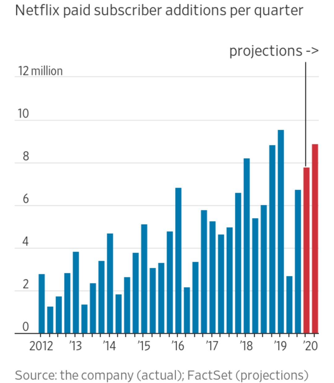 Netflix各季度付费用户数增量