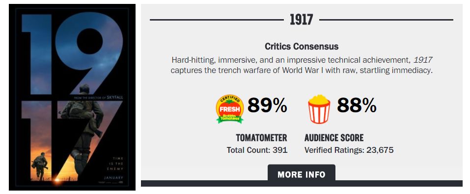《1917》烂番茄网站目前评分颇高