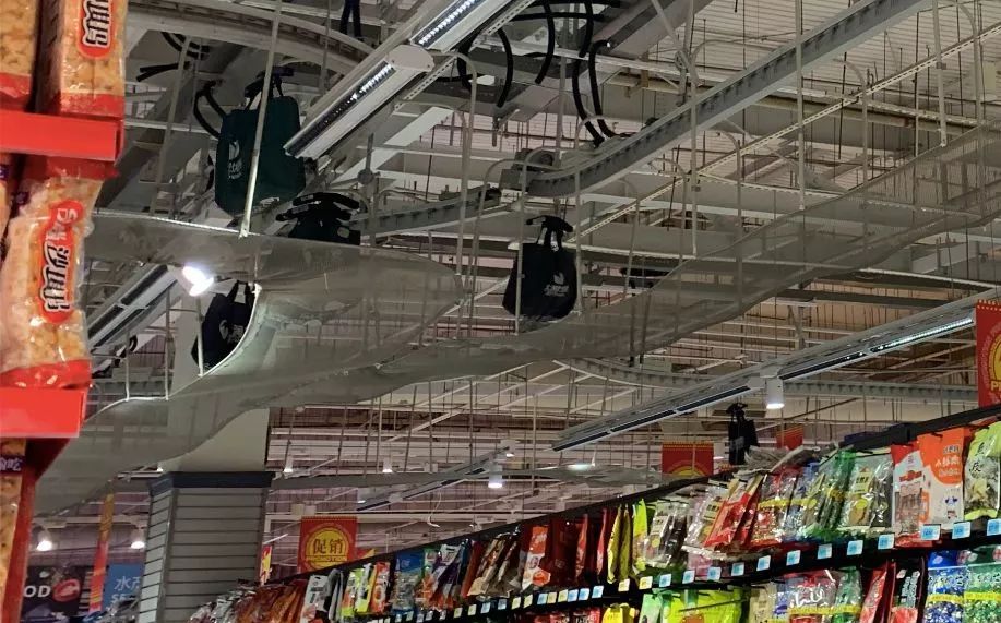 ▲ 大润发上海杨浦店内的悬挂链系统。