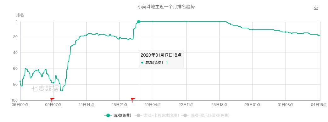除此之外,在抖音“集卡分五亿”的活动中,其中一项任务便是下载并打开《小美斗地主》收集卡片,不过这项玩法没有停留太长时间,便被“下载并打开番茄小说”所取代。借助强有力的宣发,《小美斗地主》从1月17日起登顶,并霸榜了9天。