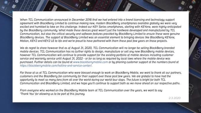 作为前 iPhone 时代「商务手机」中最有代表性的品牌,黑莓曾经是「菁英」的象征、「公务」的代表。而就在昨天,已经被 TCL 收购的黑莓正式发布公告「将停止所有内部硬件研发工作」,硬件外包给富士康等合作伙伴。