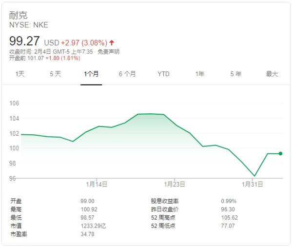 ▲耐克股价在美国确诊首例新冠肺炎疫情之后的10天内下跌了近8%。