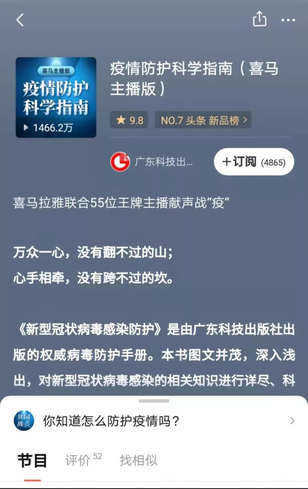 喜马拉雅《疫情防护科学指南》节目