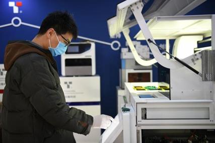 其快速、大通量的特点可以满足大批量、应急检测,一次可同时上机96个样本,各实验区同步运行,60-80分钟内即可完成96个样本的信息扫描、样本加载、核酸提取、PCR体系构建等功能,超高的工作效率和样本处理能力可以满足大批量应急检测需求,及早诊断后有利于下一步临床处置;同时还配置4种PCR体系,无需手工预混PCR试剂,核酸提取可在3-6孔之间自由选择,适合更多样本类型;样本及核酸产物留样,蛋白酶K自动稀释……该平台还引入了独立分区、气压调节、HEPA过滤及紫外灯照射等诸多技术,操作上实现一键启动,最大程度地防止医务人员感染的可能性,保障医务人员的生物安全。目前,全自动核酸工作站已应急支援中国疾病预防控制中心,以及湖北省疾控和武汉市疾控等地。
