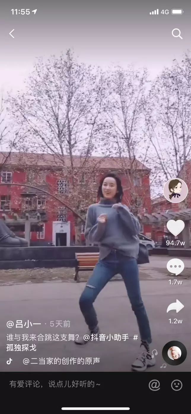 观察这些艺人的抖音,你会发现,他们对于抖音最新的热门特效、舞蹈和音乐了如指掌。比如前几天吕一就拍了一支抖音最近很火的孤独探戈,点赞量达到90多万,她平时的视频点赞量只在几万到十几万之间。