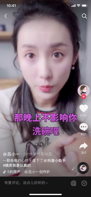 和张庭一样适应抖音的演员还有曾主演电视剧《雪在烧》的吕一,除了各种抖音热门模板和特效玩得飞起,她还会围绕生活创作趣味故事,又或是直接将笑话故事拍摄成视频形式,搭配抖音上常见的配乐,而这没有专门的团队很难完成。