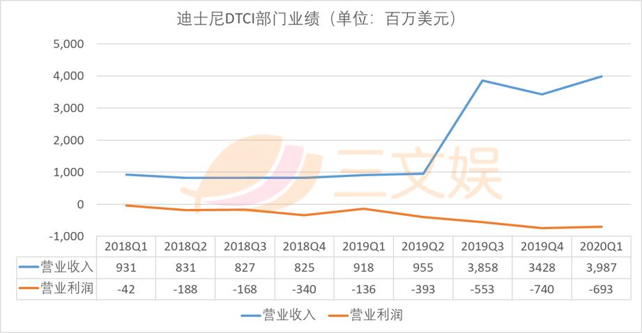 Disney+上线后,截至期末,已经2650万订阅用户,因此迪士尼的订阅费用收入实现大幅增加,达到了13.26亿美元,但与此同时也要承担巨大的营业成本,这个成本大于收入,所以DTCI本期的营业利润为负6.93亿元。