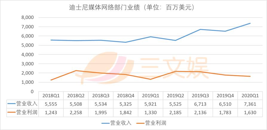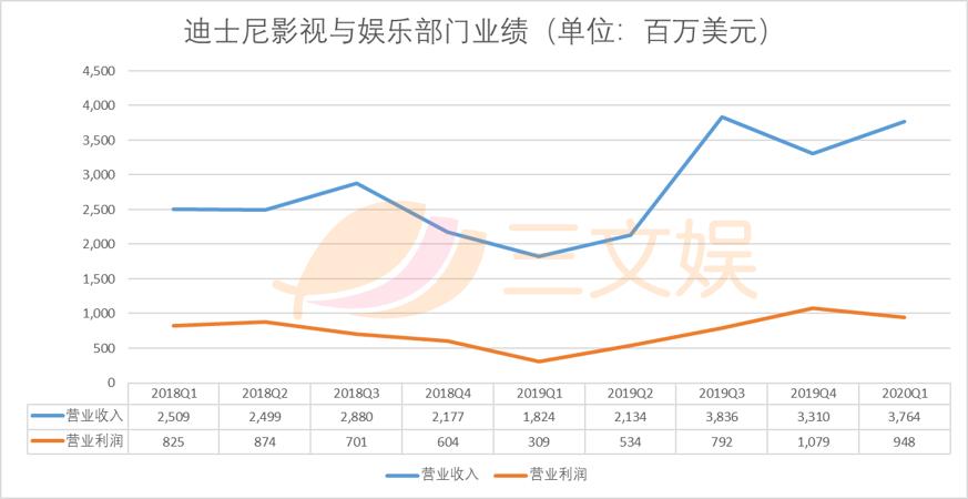 影视娱乐部门本期营收37.64亿美元,较去年的18.24亿美元翻了1倍,营业利润9.48亿美元,是去年同期的3倍。