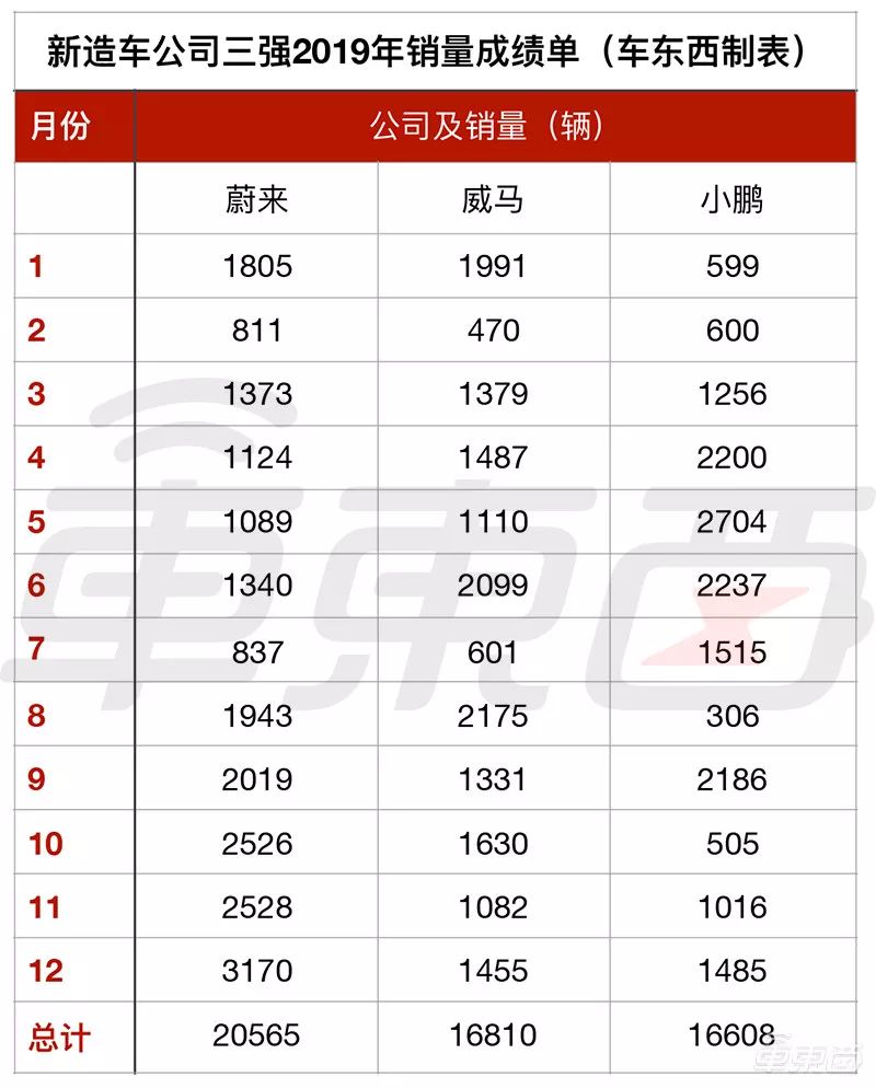 ▲新造车公司2019年销量成绩单