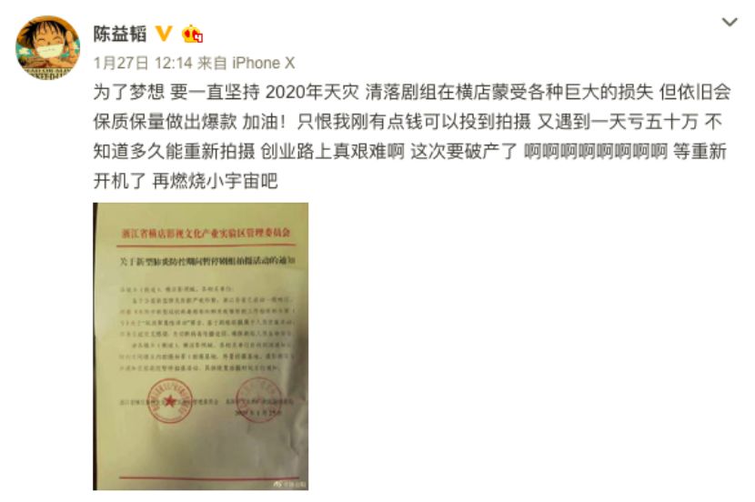 虽然横店影视城释放了一些优惠政策,但导演祝东宁仍然表示:“其实这也是杯水车薪,虽然场租、食宿便宜了一些,但人员上产生的费用也是一大笔开支,而且后期演员档期的安排也需要协调。”难!实在是太难了!但疫情当前,每个剧组都理应跟随政策资源隔离,避免疫情扩散传播才能使影视行业早日恢复正常。