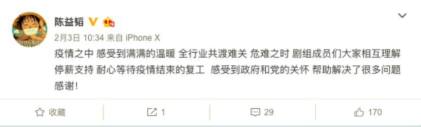 疫情的蔓延属于不可抗力,关键在于在疫情下生活的人们要如何看待天灾。虽然剧组被迫暂停拍摄,好在剧组人员互相理解、守望相助,这份理解和支持无疑是在寒冬里传递着一股暖流。