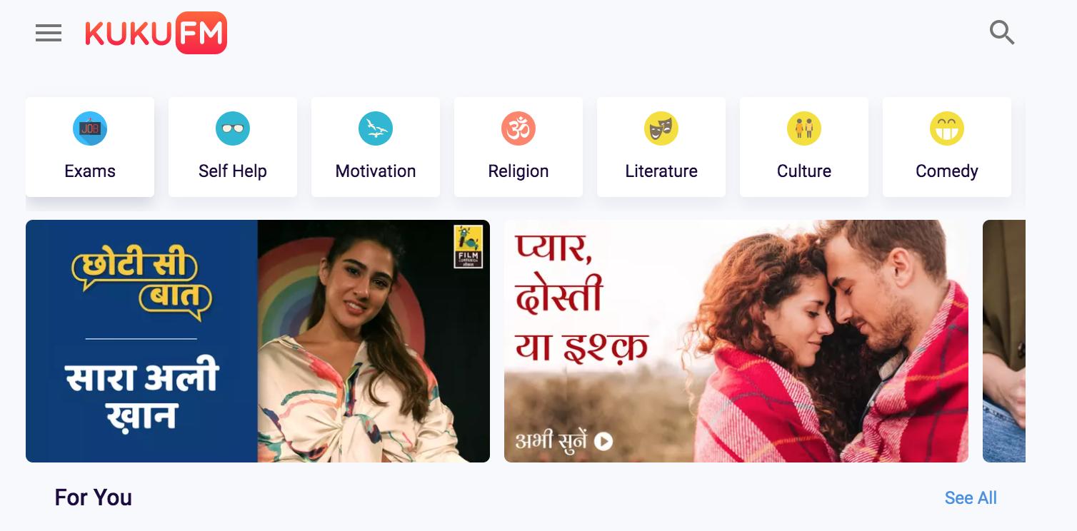 据相关资料统计,印度共有1652种语言和方言。其中使用人数超过百万的达33种,地方性特色明显,这也让印度市场难以适用中国创业的许多路径。Kuku FM以印地语内容起家,并逐步拓展到更多方言种类的音频内容。在去年的11月,Fufu就计划在博客中推出印度23种方言的内容,平台上超过1000名的博主已经制作了超过2100个播客节目。而据KrASIA,目前平台上的博主已超过3000名,音频内容超过5000小时,涉及个人成长、小说、神话宗教、励志、冥想等内容。