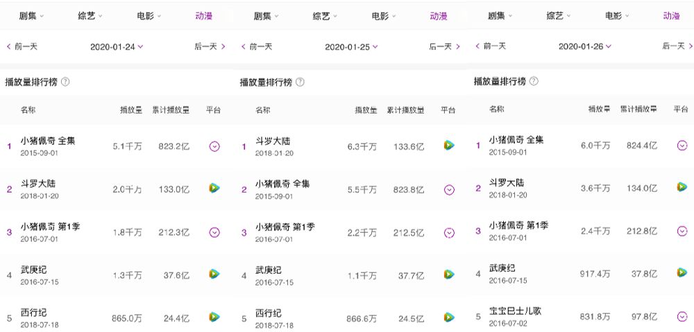从动漫作品整体播放情况来看,与去年同期基本被《小猪佩奇》等低幼向作品霸榜相比,今年不少青少向动画作品跻身总播放量TOP5。