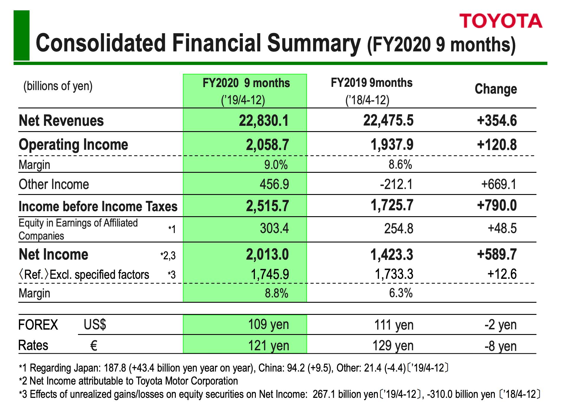 当地时间2月6日,丰田汽车公布了2020财年(2019.4-2020.3)第三财季财报(2019.10-2019.12)。