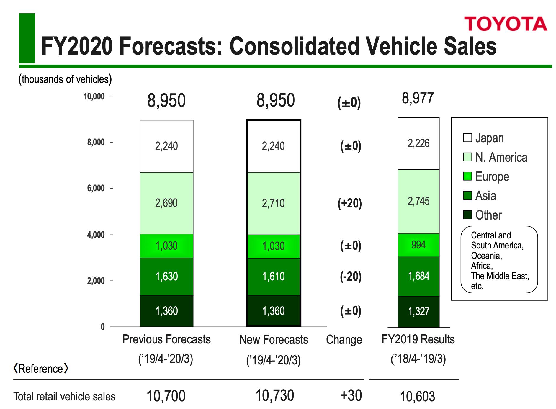 丰田汽车预计,在截至2020年3月的财年,其全球汽车销量将达到1073万辆,略高于此前预估的1070万辆。其中,丰田汽车将其在亚洲市场的销量预期从163万辆下调至161万辆,而北美市场2020财年的销量预计将增长2万辆。