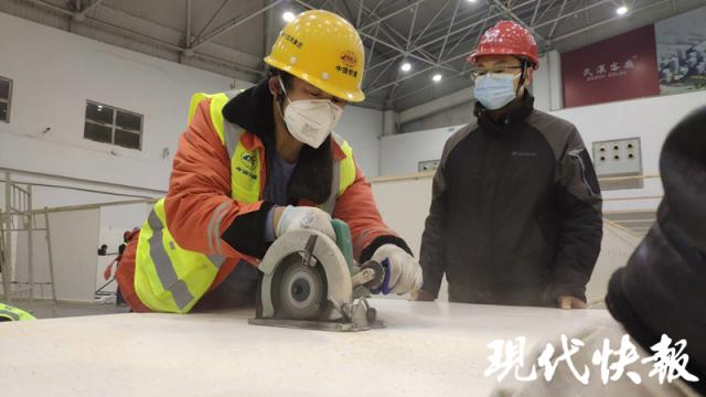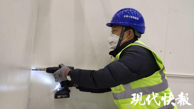 据中铁十四局项目负责人林尚月介绍,项目部此次负责武汉客厅东大厅部分改造工程,他们组织了32名精干人员奔赴一线,并分成房间安装和水电安装两个小队进行施工。从5日18:00接到任务,到6日9:00,经过通宵达旦全力奋战,此次援建任务已全部完成。