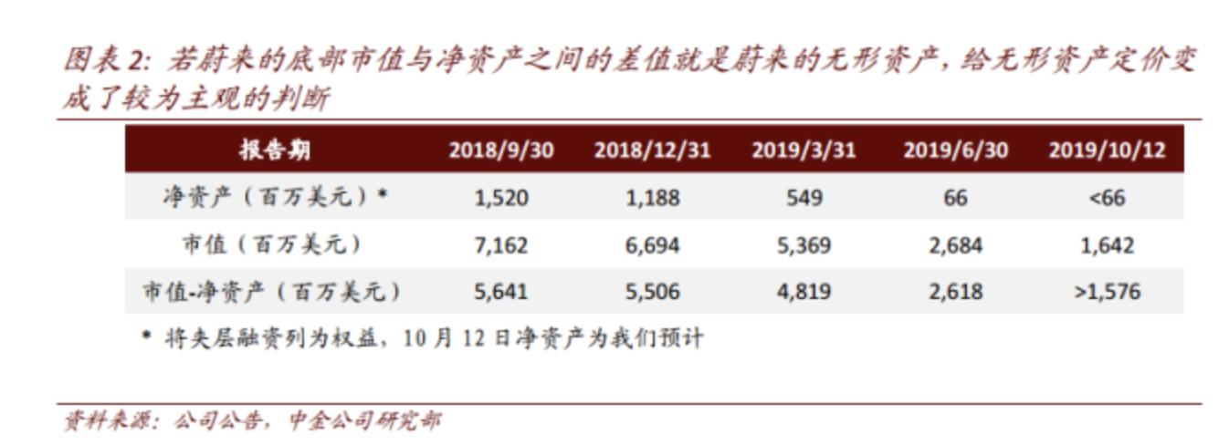 蔚来“无形资产”呈下滑趋势 来源:中金公司