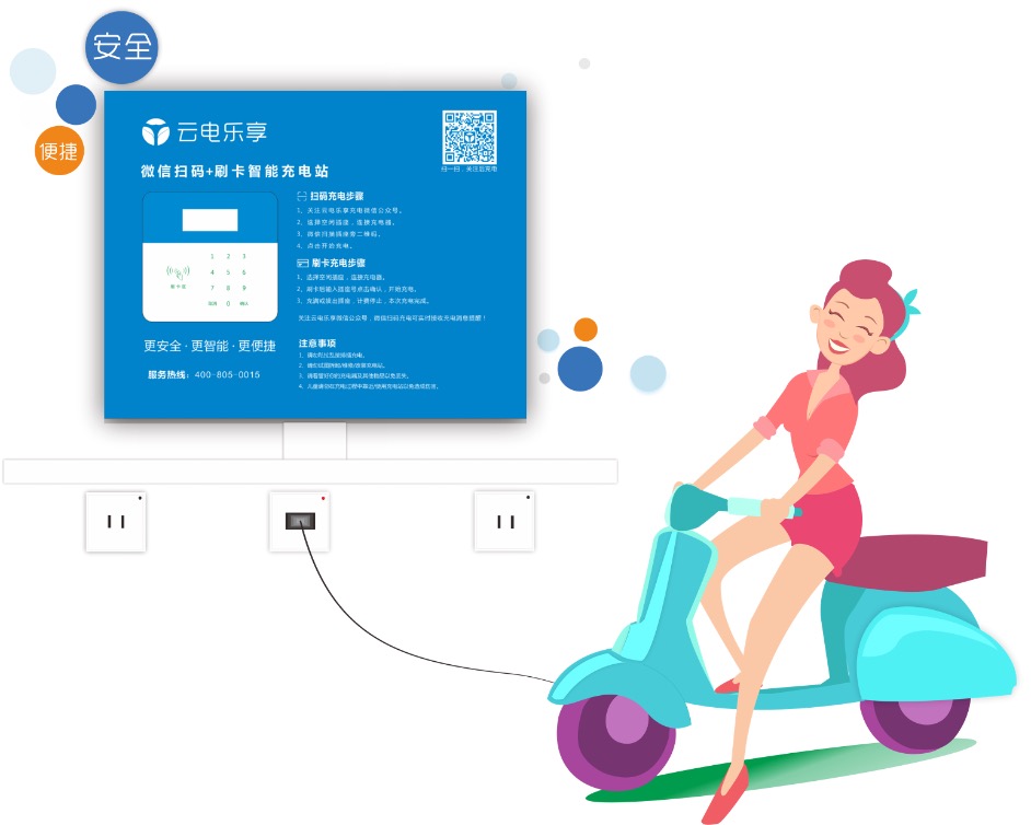 在实际应用层面,「云电乐享」通过与小区物业进行合作,将自主研发的充电硬件在社区进行改造安装。“我们的充电硬件可以实时监测充电的物理数据,当电瓶车充满电时即会自动断电,进而保证安全。而且我们在每一台机器出厂时就投了保险,保障用户的权益。”李峰表示。同时,「云电乐享」通过云数据和物联网智慧管理平台,为用户提供快捷的微信扫码、缴费、充电及结算等服务,科学地解决了社区电动自行车因为充电所带来的诸多不安全问题。