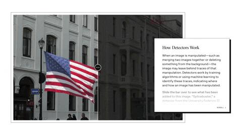 这款照片打假神器名为 Assembler,具有 7 个检测器(detectors),其中 5 个由美国和意大利的大学研究团队开发,分别负责检测经不同类型的技术处理过的照片,例如合成、擦除等,这些操作都可能留下蛛丝马迹,学习过大量案例的计算机程序可以在分析图像后标记出它认为的更改痕迹,如颜色模式异常、已经复制和粘贴多次的区域以及是否图像使用了多个摄像头模型来创建等。