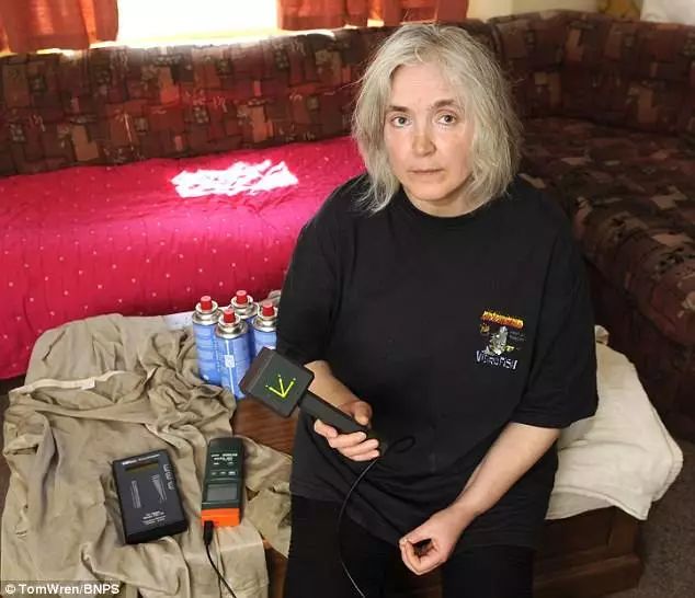 Jackie Lindsey 用来测量电磁信号的设备. 图片来自:DailyMail.