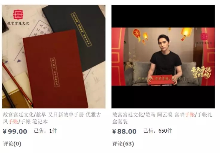 另一方面,这些明星们的带货效果不错。据腾鱼观察,截止1月14日,产品上线还不到一个月,在故宫宫廷文化官方淘宝店“宫里的世界”里,阿云嘎同款手账已经卖出了650件,对比店内同款手账,销量翻了多倍,是近期店内的“爆款”。